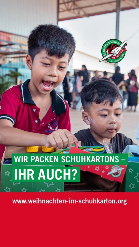 Wir als Evangelisch-Freikirchliche Gemeinde (EFG) Burgstädt sind offizielle Annahmestelle von „Weihnachten im Schuhkarton“, einer Aktion von Samaritan’s Purse.